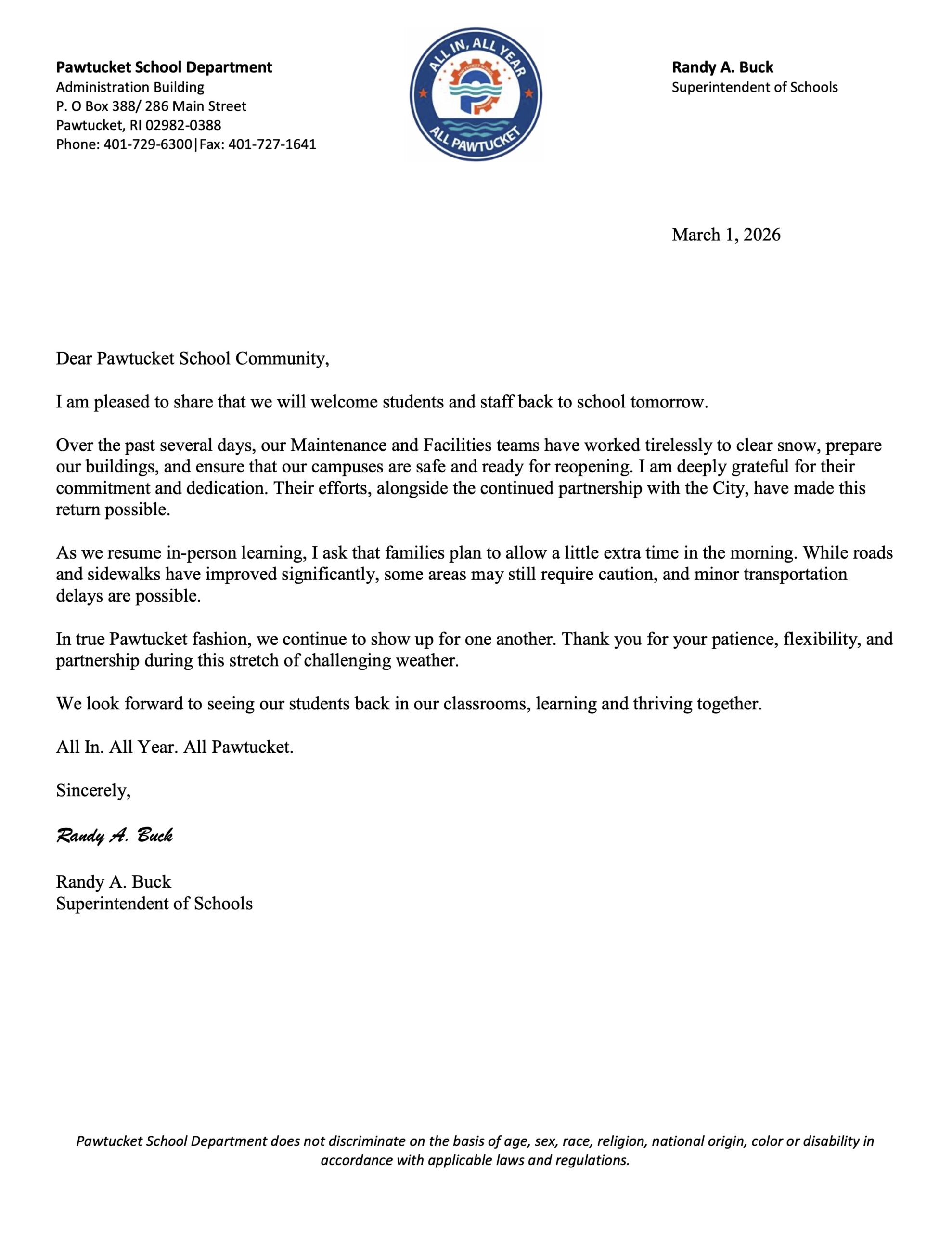 City of Pawtucket and Pawtucket School Department announce counseling and support services for school community and one-hour delayed school start for Shea High School following Lynch Arena tragedy. Update: Due to the current weather conditions, the Pawtucket School Department and all Pawtucket Public Schools will be closed on Read More »